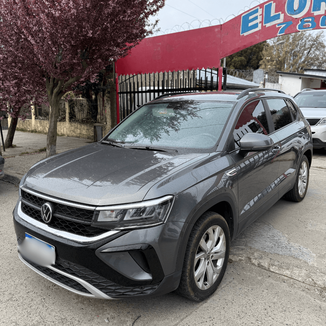 El Volkswagen Taos 250 TSI Comfortline gris oscuro 2023 ofrece tecnología y confort con un estilo moderno para disfrutar cada viaje.